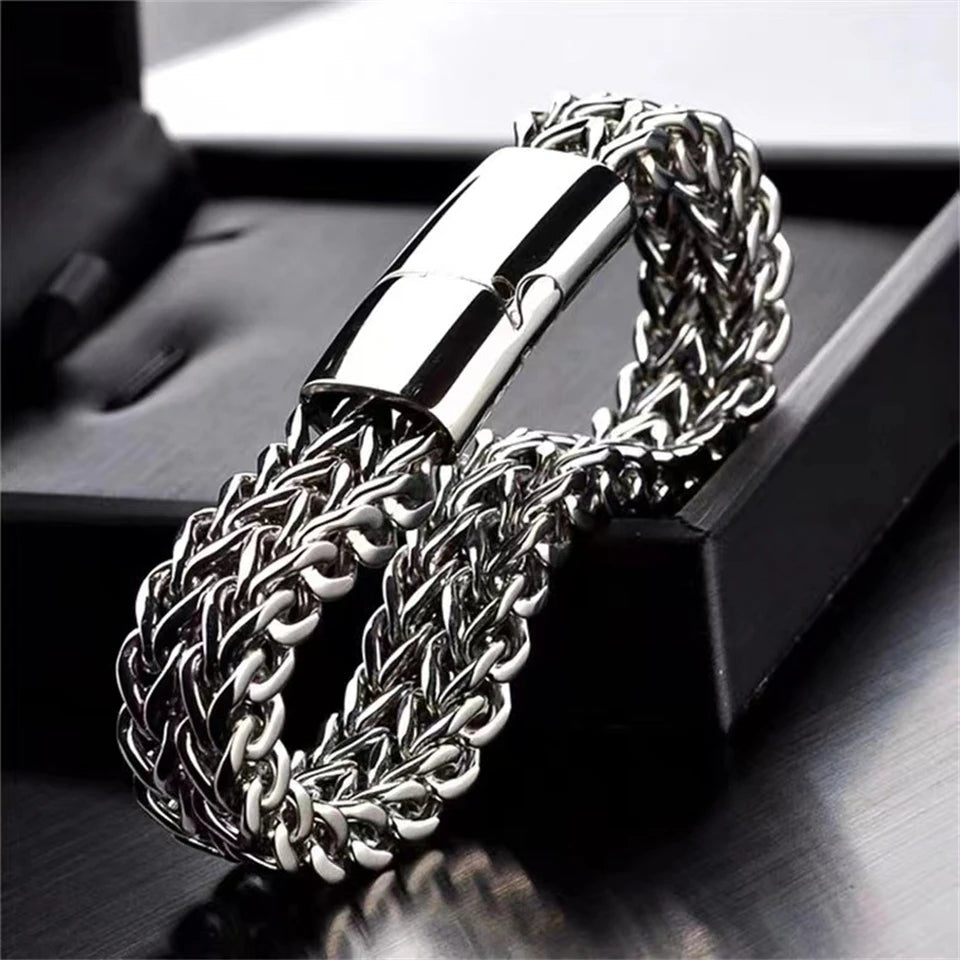 UILZ Explosive Hip Hop Exquisite Stainless Steel Cuban Chain Bracelet Front And Back Men's Simple Bully Punk Bracelet